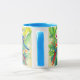 Mug in vividly colored tropical birds surrounded by lush green foliage and vibrant flowers. The birds display brilliant shades of red, blue, yellow, and green. The scene depicts exotic beauty and rich botanical detail.