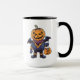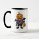 Personaje de Halloween con cabeza de calabaza y alas de murciélago ofreciendo trucos o golosinas