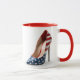 Trump Chica 2028 escribe sobre blanco con una bandera estadounidense en un zapato de tacón alto.