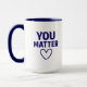 ¡Empieza cada mañana con un mensaje que importa! Esta taza de cerámica "You Matter" tiene letras rojas audaces y un símbolo de corazón que se combina en un elegante fondo negro. Con una capacidad de 11 oz, es a la vez microondas y lavavajillas. ¡Un regalo sincero para amigos, familia, profesores o cualquier persona que necesite un levantamiento diario!
