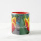 Foto de jardín florido de Tulipanes Rojos y Amarillos, Woman's Name Mug, con un nombre de personalizable completo. Un diseño fotográfico glorioso para complementar cualquier decoración. Diseñado a partir de mis fotos originales de mi propio jardín de flores.