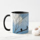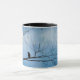 Two crows on a branch with a blue, celestial sky behind them. A full moon brightly glows in the background of these pretty birds.