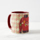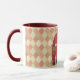 This pretty, colorful mug features my original graphic art of an 'ugly Christmas sweater' in red with ornaments on the sweater placed on a peach toned argyle patterned background. It has a red color inside it and on the handle. These are 11-ounce mugs, just the perfect size for your home brewed coffee or tea - or even hot chocolate! It would make a great gift and you can put packets of coffee, tea bags or hot chocolate inside. One other gift idea is putting a little plant in it to make it extra special for your loved one. A fun Christmas Holiday gift for anyone.