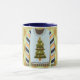This pretty and cute mug features my original graphic art of an 'ugly sweater' with a Christmas tree on the sweater and striped sleeves. It was put on an argyle pattern in the background in gold-green color tones. It has a dark blue color inside it and on the handle. These are 11-ounce mugs, just the perfect size for your home brewed coffee or tea - or even hot chocolate! It would make a great gift, and you can put packets of coffee, tea bags or hot chocolate inside. One other gift idea is putting a little plant in it to make it extra special for your loved one. A fun Christmas Holiday gift for anyone.
