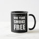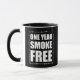 Un Año Mug Aniversario Libre De Humo. Diseño de regalo para las personas que dejaron de fumar hace un año.