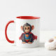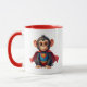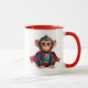 Ce petit singe est un vrai héros. Il porte un costume bleu et une cape rouge qui flotte derrière lui. Avec son grand sourire et ses yeux brillants, il a l'air super gentil et courageux. Son pelage noir et doux le rend encore plus mignon. Il est prêt à sauver le monde avec son énergie et sa bonne humeur.