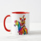 Un clown rigolo avec son gros nez rouge, son grand sourire et son maquillage blanc éclatant chevauche un cheval multicolore avec une crinière arc-en-ciel, son costume à pois avec des manches rayées et une collerette jaune donne un effet encore plus drôle, ses cheveux roux ébouriffés volent au vent pendant qu’il s’accroche aux rênes roses de sa monture magique, il fait des grimaces rigolotes et semble prêt à faire une blague hilarante dans un spectacle de cirque rempli de couleurs et de rires d’enfants.