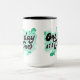 15oz cerámica de dos tonificantes tazas de bebida caliente, perfecto para café o té. Blanco con interior negro y mango con diseño salpicado verde azulado de un día a la vez.