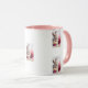 Taza Un lindo conejito rosa de Pascua con canasta y hue