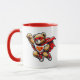 Un ourson super-héros vole avec une pose dynamique, le poing levé et sa cape rouge flottant derrière lui. Il porte un masque rouge et un costume blanc et rouge avec un symbole de super-héros sur la poitrine. Ses baskets assorties et son regard déterminé lui donnent un air courageux et plein d’énergie. Son style inspiré des bandes dessinées plait aux enfants et aux amateurs de personnages mignons et héroïques.