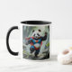 Voici l'image d'un panda super héros, il est en action, courant à plaine vitesse à travers les bambous. Sa cape rouge, sa combinaison bleue et ses bottes lui donne force et courage. Aussi mignon soit t'il, aussi fort il est. Pour informations, le panda est originaire des forêts de bambous montagneuses de Chine, principalement dans les provinces du Sichuan, du Shaanxi et du Gansu.