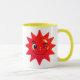 Un mug au look sympa, un soleil rouge et non jaune, vous fait un joli sourire pétillant, il est beau, il est heureux, tout va bien, il vous fait un clin d'oeil.