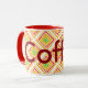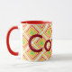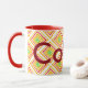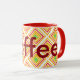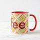Gran tazón de café de diseño, amarillo, verde, burdeos y rojo. El texto se puede personalizar con un nombre, o el texto también se puede eliminar, para que se adapte a tu estilo de cocina.