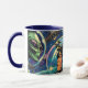 Comic libro de arte pop estilo ai arte que representa a una astronauta que conoce a un extraterrestre que está en el espacio exterior con un OVNI, estrellas y planetas en el fondo.