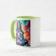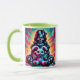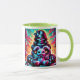 L'image montre une poupée au sourire sadique, effrayante, assise et tenant un lapin tout doux en peluche dans ses bras. L'atmosphère qui se dégage est à la fois surréaliste et macabre, avec un arrière-plan coloré, presque mystique, de couleurs vives et de nuages enflammés. La poupée a un regard perçant, ses yeux brillent d’une lueur étrange, ajoutant une sensation d'horreur et de mystère au design. Le contraste entre l’aspect innocent du lapin et l'expression inquiétante de la poupée crée une ambiance à la fois étrange et fascinante. L'illustration est à la fois colorée et perturbante, avec des éléments qui évoquent un monde surréaliste et légèrement perturbant, parfait pour ceux qui aiment l'art qui sort de l'ordinaire.