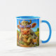 Mug fun colorée, image humoristique avec une vache souriante portant des lunettes en forme de cœur, parfaite pour les amateurs de design champêtre et d'objets insolites. Illustration vive, ambiance joyeuse et rurale, idéale comme cadeau original ou déco de cuisine.