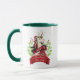 Navidades con unicornio mágico con una hueca y una bufanda roja. El texto es personalizable.