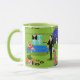 Este el navidad urbano retro junta características de la taza que el dibujo del dibujo animado de un apartamento elegante del ático adornó todo para los días de fiesta con los filamentos de luces de navidad coloridas y de un kitschy, rosados, árbol de navidad, termina con ornamentos verde azulados y una estrella amarilla. El apartamento ofrece un piso verde y una pared de ladrillo verde. En la pared es la película Martini de cuatro obras clásicas las impresiones estiradas de la lona, también disponibles de la tienda de Zazzle de StrangeLittleOnion (indirecta, indirecta!). Tres de las impresiones ofrecen fondos de la turquesa y uno está en un fondo negro. Debajo de las impresiones de la lona, es un azul, sofá moderno de los mediados de siglo. Una belleza sofisticada, cuervo-haired se está sentando en el sofá. Ella está llevando un vestido y un gorra vibrantes, rojos de Santa. En una mano, ella está sosteniendo una puntilla del muérdago atada con un arco rojo. En el lado opuesto del cuarto hay un hombre suave, alto, oscuro, y hermoso. Él está llevando un juego negro, una camisa blanca, y un lazo rojo. En una mano, él está sosteniendo un álbum de disco de vinilo, y, en la otra mano, él está llevando a cabo una cubierta del álbum de la diversión. En el piso, hay un otomano anaranjado que celebra a un tocadiscos verde y negro. Se apoya contra el otomano otra cubierta del álbum con un desarrollo de registro del lado. Hay también tres álbumes coloridos del vinilo dispersados sobre el piso. Detrás del hombre, podemos ver, a través de puertas de vidrio de desplazamiento, de la nieve que cae sobre un balcón verde y de la ciudad abajo. Un gato blanco que lleva un arco rojo alrededor de su cuello se encarama al borde del balcón. Más allá del gato, hay un horizonte impresionante de la ciudad completo con rascacielos y una luna creciente amarilla. ¡Si éste es cómo los otros períodos, me firman para arriba!