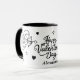 Celebrate love with timeless elegance using this romantic Valentine’s Day black & white mug. Hand Designed with a delicate, light doodle illustration, this mug features a charming cherub at the left, graceful “Happy Valentine’s Day” calligraphy at the center with the loved one’s name, and a classic rose motif on the right. Scattered hearts and sparkling stars complete the design, creating a dreamy and heartfelt aesthetic that feels both whimsical and refined.