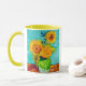 Mug con el cuadro de vida de Vincent van Gogh que representa un ramo de girasoles en un jarrón verde. Parte de su versión inicial en la serie Arles Sunflowers. Un gran regalo para los aficionados al post-impresionismo, pinturas florales y arte holandés.