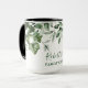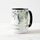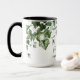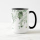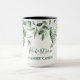 Nombre familiar Cabin Watercolor Vegetación Botánica Café Mug incluye hiedra, helecho y hojas de salvia.