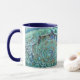 Vela azul en la espumosa pintura al mar Pintado de una gran concha verde azul en el mar espumoso.