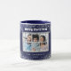 Un fondo azul profundo decorado con purpurinas de plata falsa y estrellas brillantes. El color azul es desigual. Personaliza y agrega tu propia foto, nombre y un año. Con el texto: Feliz Navidad. Una ventana superpuesta sobre tu foto.