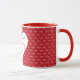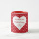 Verbundene Herzen mit Valentinsgruß: "Alles Liebe zum Valentinstag". Roter Hintergrund mit weißen Herzen.