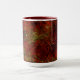Textura em tons variados de vermelho que causam uma percepção de chamativa tinta brilhosa envelhecida e descascando sobre uma parede na cor cinza e muito áspera.