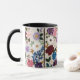 A stunning split-panel floral artwork featuring an exquisite array of oversized blooms in rich jewel tones—deep purples, vibrant pinks, bold blues, crisp whites, and dramatic burgundy roses—arranged asymmetrically on a neutral beige background. The design is divided by a subtle wooden frame line, creating a mirror-like contrast between the two sides, with lush green leaves and delicate filler flowers adding depth and texture. The flowers have a luxurious 3D embossed effect, giving them a tactile, sculpted appearance that evokes elegance and sophistication. Perfect as a luxury wallpaper mural, wall art, or decorative print to bring vibrant, nature-inspired beauty to any space.