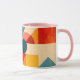 A retro-inspired abstract artwork blending circles, triangles, and squares in vibrant blue, orange, and red tones with a distressed texture.