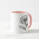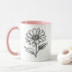 Mugre de época con una imagen en blanco y negro de una flor simple y minimalista. Imagen de un girasol a cada lado de la taza. Ideal para el Día de la Madre o regalo de cumpleaños.