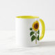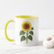A cheerful vintage sunflower botanical design wraps this mug with sunny charm. Featuring the floral illustration on both sides and a bright yellow interior, it's perfect for adding a touch of garden warmth to your morning coffee or tea routine