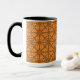 This combo mug features an intricate lattice‑style tile pattern in rich shades of orange and brown, blending circular floral motifs with geometric symmetry for a refined, handcrafted look.