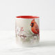 This charming Christmas mug features a beautifully detailed red cardinal perched on a snowy branch adorned with winter florals. The soft background and vibrant red interior create a cozy, festive feel—perfect for sipping hot cocoa, coffee, or tea during the holidays. A lovely gift that brings warmth and a touch of nature’s beauty to every winter morning.