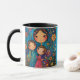 Joyful Motherhood Mug with Uplifting Message - Personalizable Family Art Description: Celebra la alegría de la maternidad con esta vibrante y edificante taza, con un hermoso ilustracion de una madre sonriente y sus dos felices hijos. La obra de arte se encuentra en un ambiente cálido y texturado de tonos naranjas, amarillos y turquesa, creando un ambiente soleado y alegre. La madre, con una expresión alegre, lleva un vestido azul brillante adornado con flores coloridas, mientras que sus hijos se paran a su lado con grandes sonrisas. Un niño está vestido con una camisa roja con estampados blancos juguetones, y el otro con un vestido azul con diseños complicados. El ilustracion se realza con encantadores acentos florales y patrones caprichosos, que captan la esencia de una familia amorosa y solidaria. La parte de atrás de la taza lleva un mensaje inspirador: "¡Confío en mi capacidad de nutrir y guiar a mis hijos, ayudándolos a crecer como individuos fuertes y amables!" Personalice esta taza con su nombre o un mensaje especial, haciéndolo un regalo significativo para las madres o cualquiera que celebre la belleza de la familia. Ideal para el hogar, la oficina o como un regalo para madres y familias. Esta taza de maternidad de personalizable es una manera maravillosa de celebrar la fuerza y la alegría de ser madre, perfecta para el uso diario o como un regalo sincero.