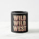 Diseño de texto "Wild Wild West" de estilo retro con letras rayadas en colores amarillo, rojo y beige