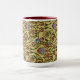 William Morris Vintage Floral Flowers Green Blue Mug - La imagen que decora este producto es un hermoso diseño de papel pintado creado en 1884 por el artista y diseñador del siglo XIX William Morris (1834-1896). El diseño presenta un patrón formal de tallos de follaje verde y jarrones que contienen plantas con flores rojas y azules sobre suelo pálido, sugestivo de grano de madera.