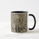Scarab tile Mug for coffee or tea. This print has a geometric tile print. The colors are black, gold. The inside and handle are black. Style: Combo Mug