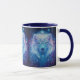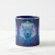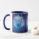 Ein Wolf unter blauem magischem Sternenhimmel. Ein zauberhafter Begleiter durch den Arbeitstag oder zur Entspannung am Feierabend mit einem wohltuenden heißen Getränk.