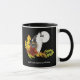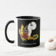 Wold Howling en luna llena con hojas y bellotas de otoño con fondo negro