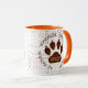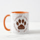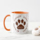 Taza Woof Art and Dog Paw in Brown Custom Name