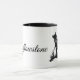 Esta taza de café de cerámica se muestra con una imagen de un lobo con texto de Yellowstone. Interior negro y manija. Personalizar este artículo o compra tal cual. Imagen de stock