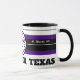 Coffee Mug blanco de 11oz con diseño de círculos concéntricos negros y púrpura con "FORT WORTH, TEXAS CENTER OF THE UNIVERSE" con una estrella solitaria en el centro del círculo. Este diseño es un grito a Fort Worth, Texas, una ciudad en movimiento. Lo llaman Cowtown.