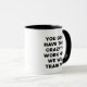 If your team is awash in productive chaos and laughter is never in short supply, this mug perfectly captures the essence of it: You don't have to be crazy to work here — we'll train you. Black lettering on a clean white body, with a black handle and interior for a modern look. It's ideal for your desk, video calls, and as a fun gift for colleagues, managers, HR, freelancers, or that friend who lives between deadlines.