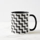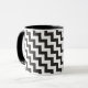 Un elegante Ringer Mug con un patrón de chevron diagonal en zigzags blancos y negros trending.