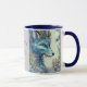 Zorro azul mítico y caprichoso rodeado de flores y hojas. Nombre modificable.