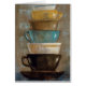 © Silvia Vassileva/Apple salvaje. Tazas de café apiladas encima de uno a en colores de tierra. La palabra Latte se puede considerar encima de la imagen.