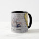 Una variedad de estilos de la taza de café, adornados todo con una porción del mapa se convierte en el logotipo que de MHP, Maris Pacifici de Ortelius 1589 "." El foco central es un ilustracion coloreado de la nave "Victoria de Magellan."