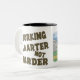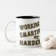 Una taza de café divertida con una imagen del dibujo animado de la tortuga y del pelo y el refrán de "no más duro más elegante trabajo"